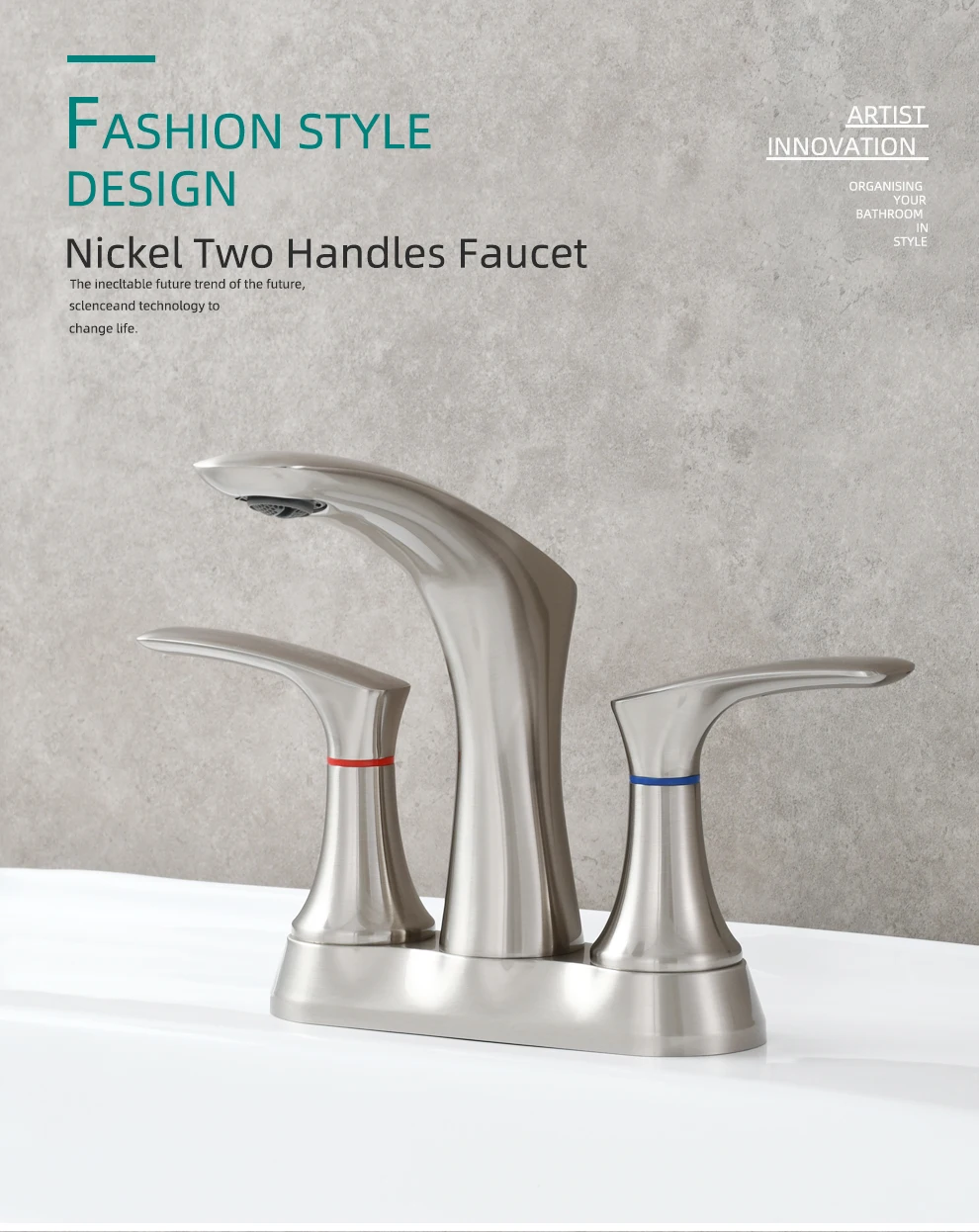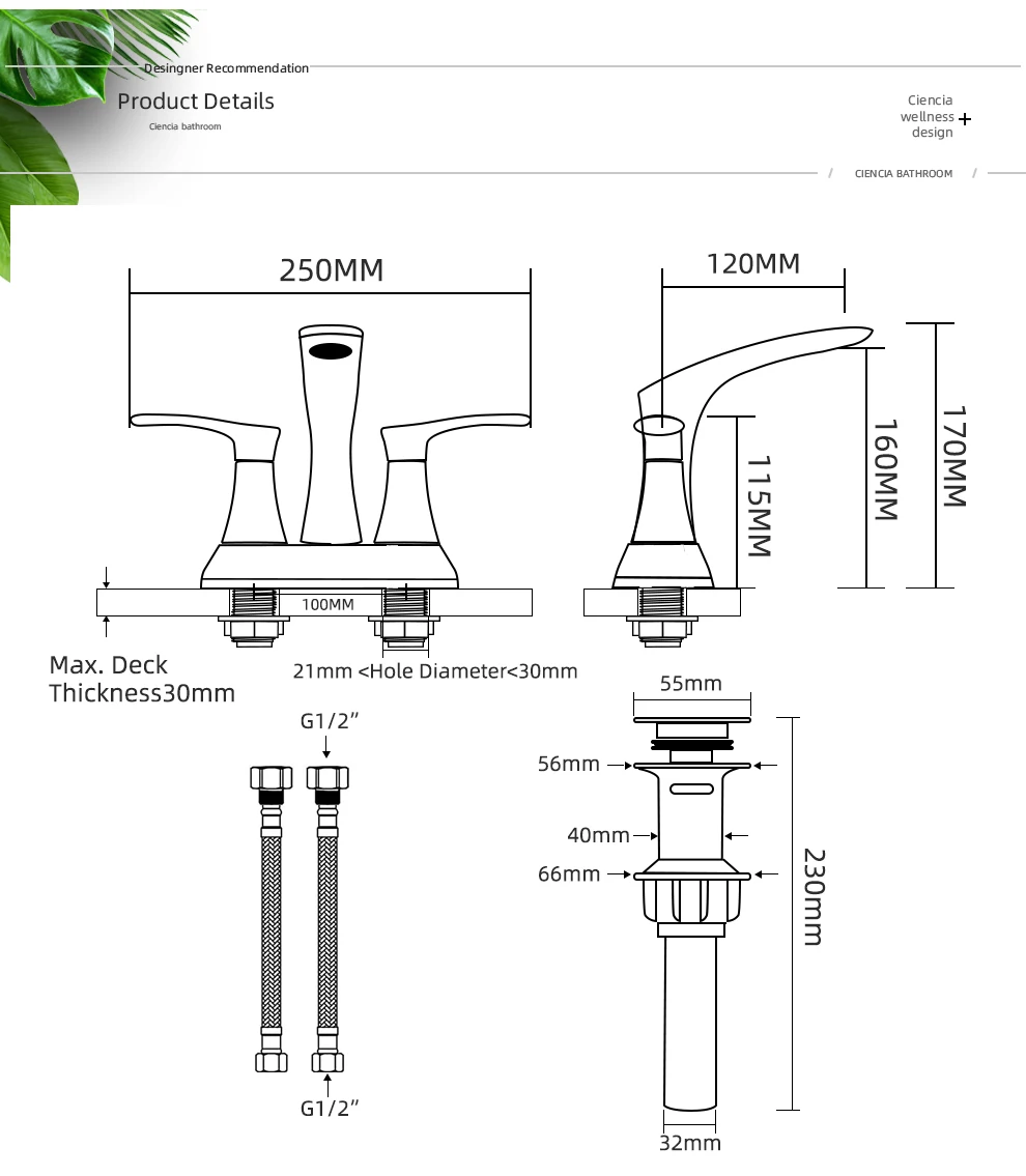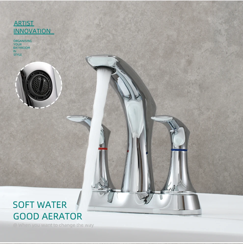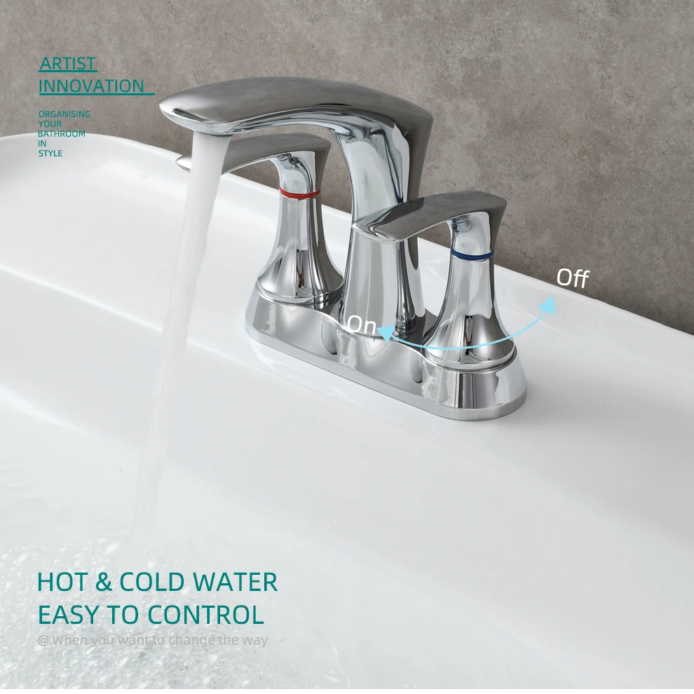 Tecmolog Brass Bathroom Deck Mount Hot and Cold Basin Faucet with Pop Up Drain