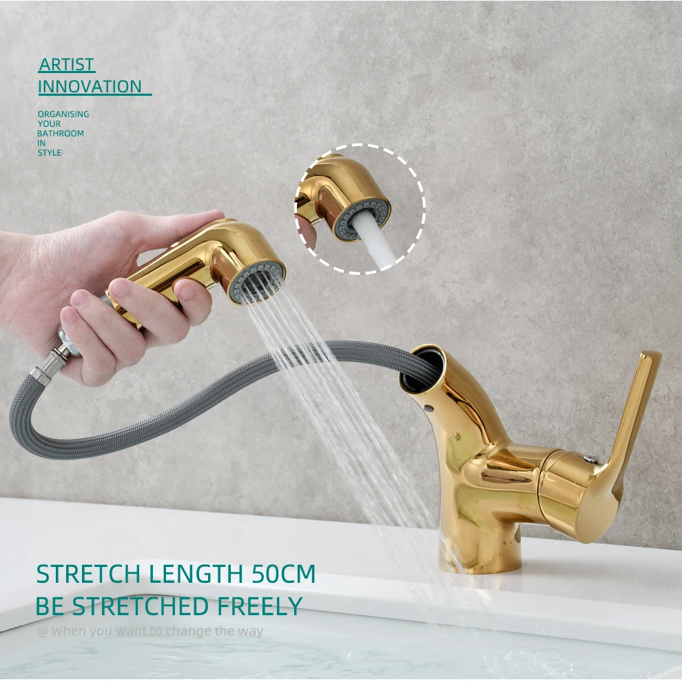 Tecmolog Brass Pull Out Faucet Basin Faucet Hot And Cold Water Faucet Bathroom Mixer Tap Single Handle,BC6232