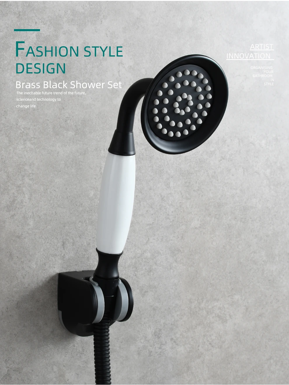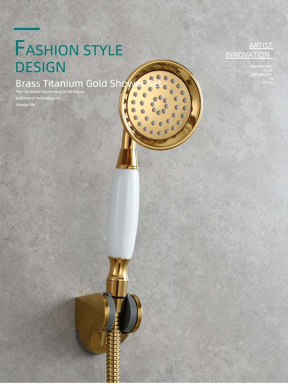 Tecmolog Brass PVD Gold Telephone Shower Head/Showee Set, Water Saving Handheld Shower Sprayer with 59" Shower Hose and Holder BS126/BS126F