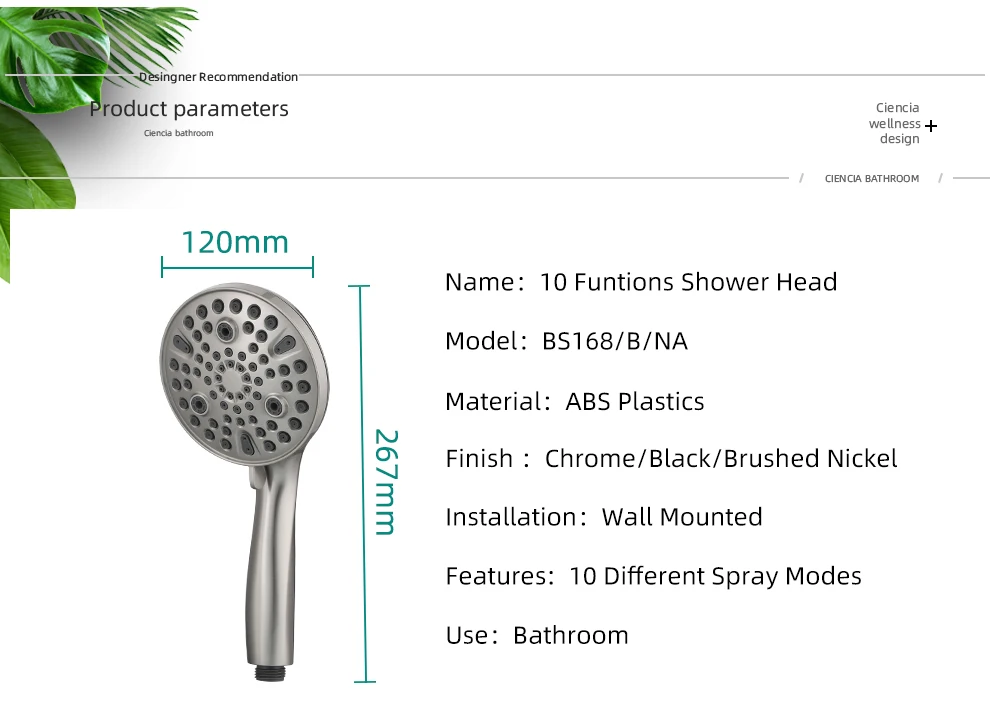 ABS Plastic Bathroom Shower Head,Shower Head with 10 Functions