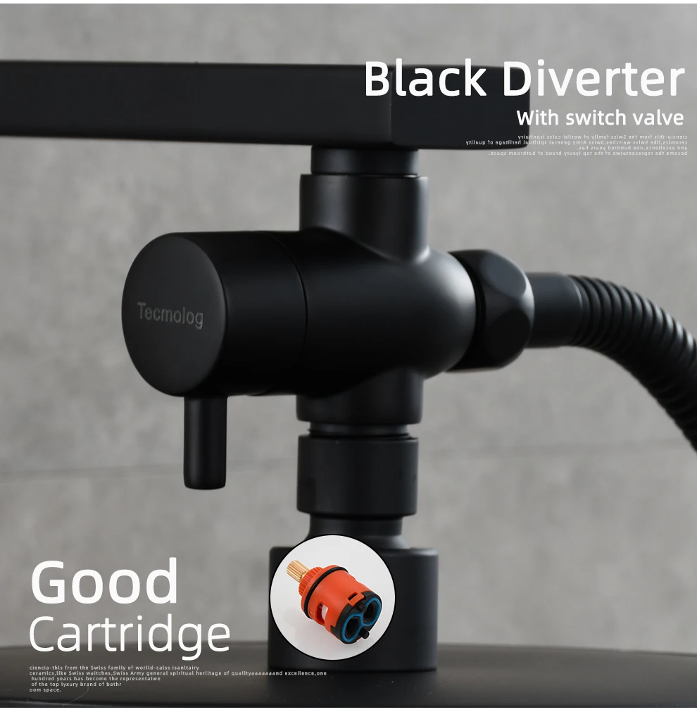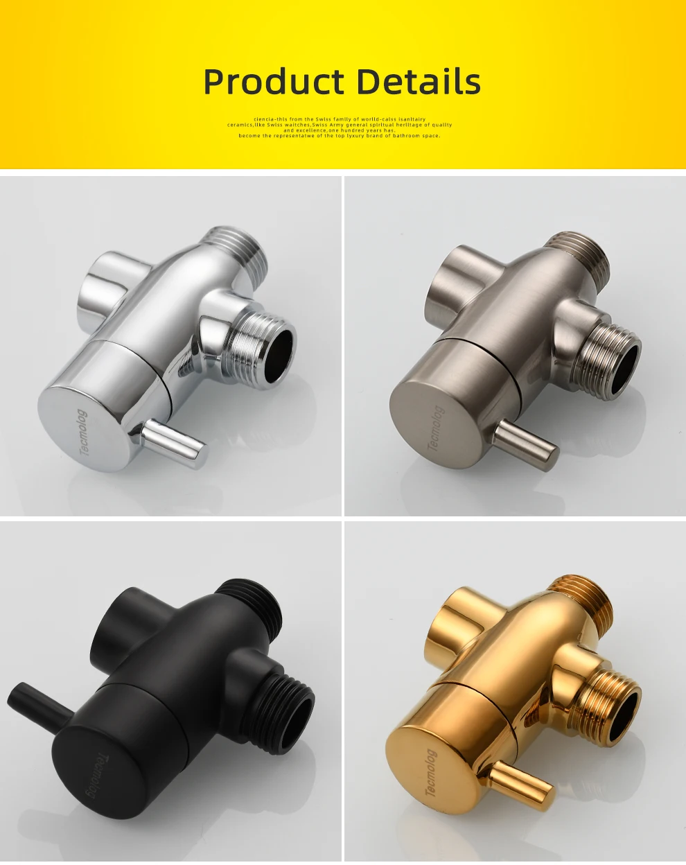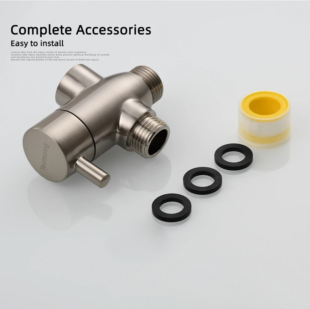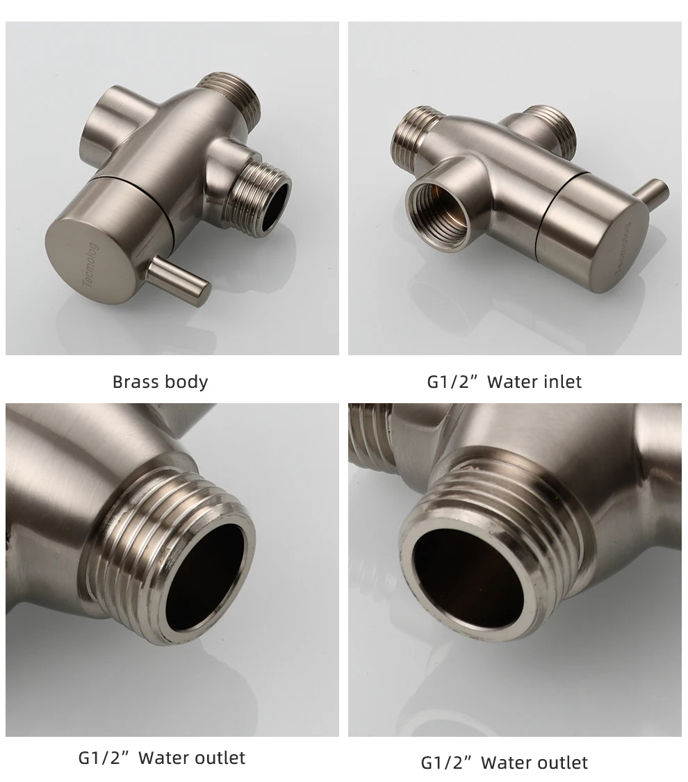 Tecmolog Brass G1/2'' Shower Diverter with Shut Off Valve for Bathtub and Shower Arm T-Valve to Fixed Shower Head,Hand Shower Head(Without nuts),Chrome/Black/Gold/Nickel