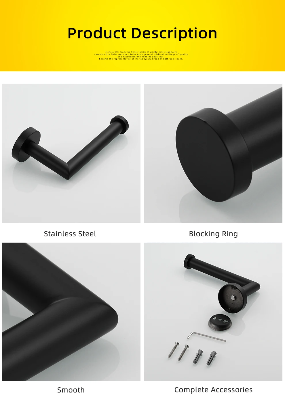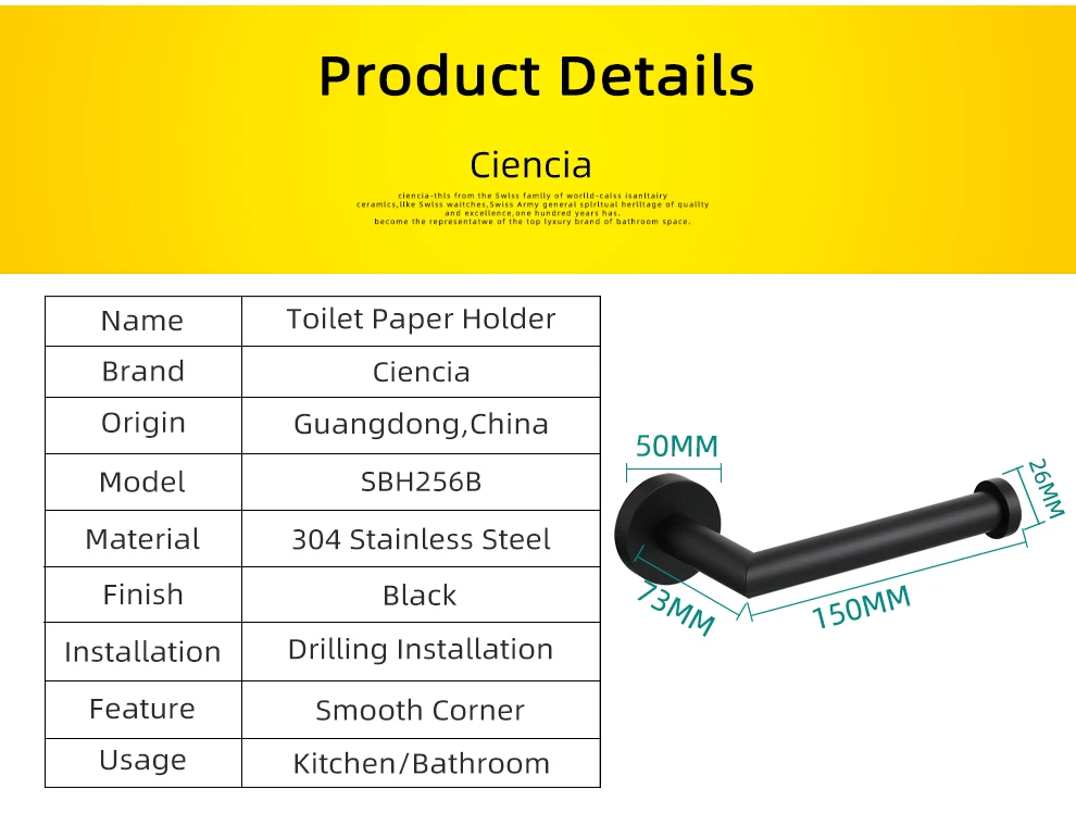 Tecmolog 304 Stainless Steel Paper Holder Wall Mounted Black Toilet Roll Holder for Bathroom,SBH256B