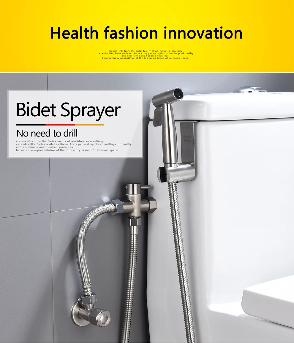 All In One Bidet Sprayer Set with 3/8” T Valve and Bracket Holder