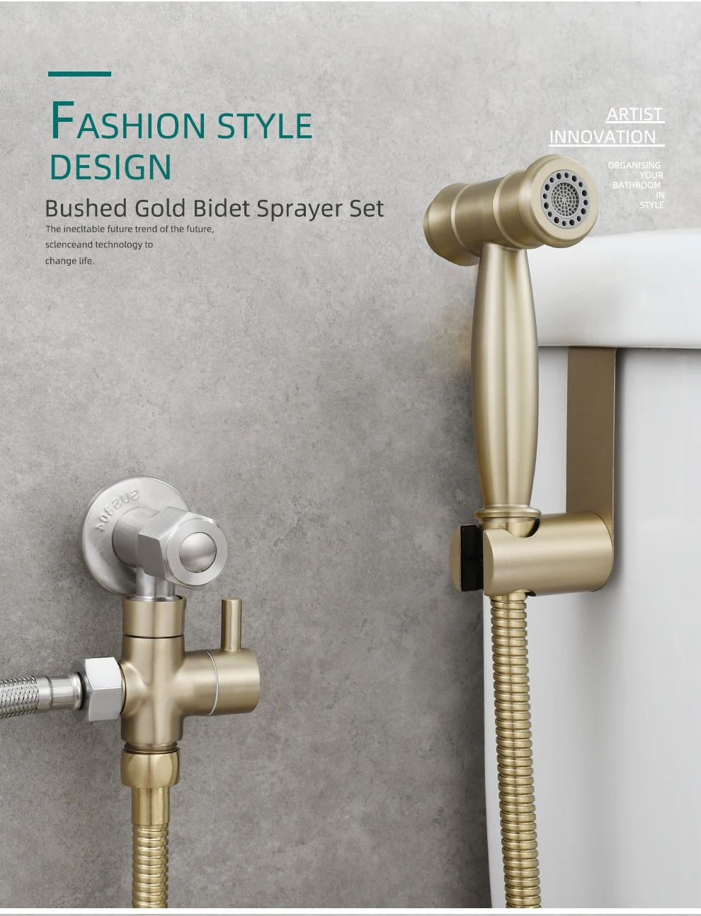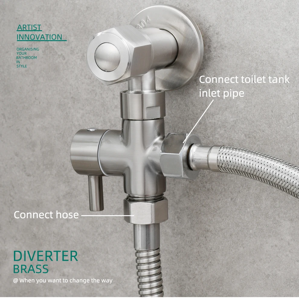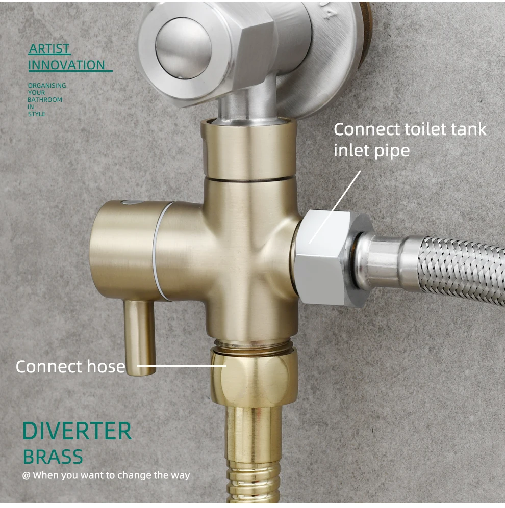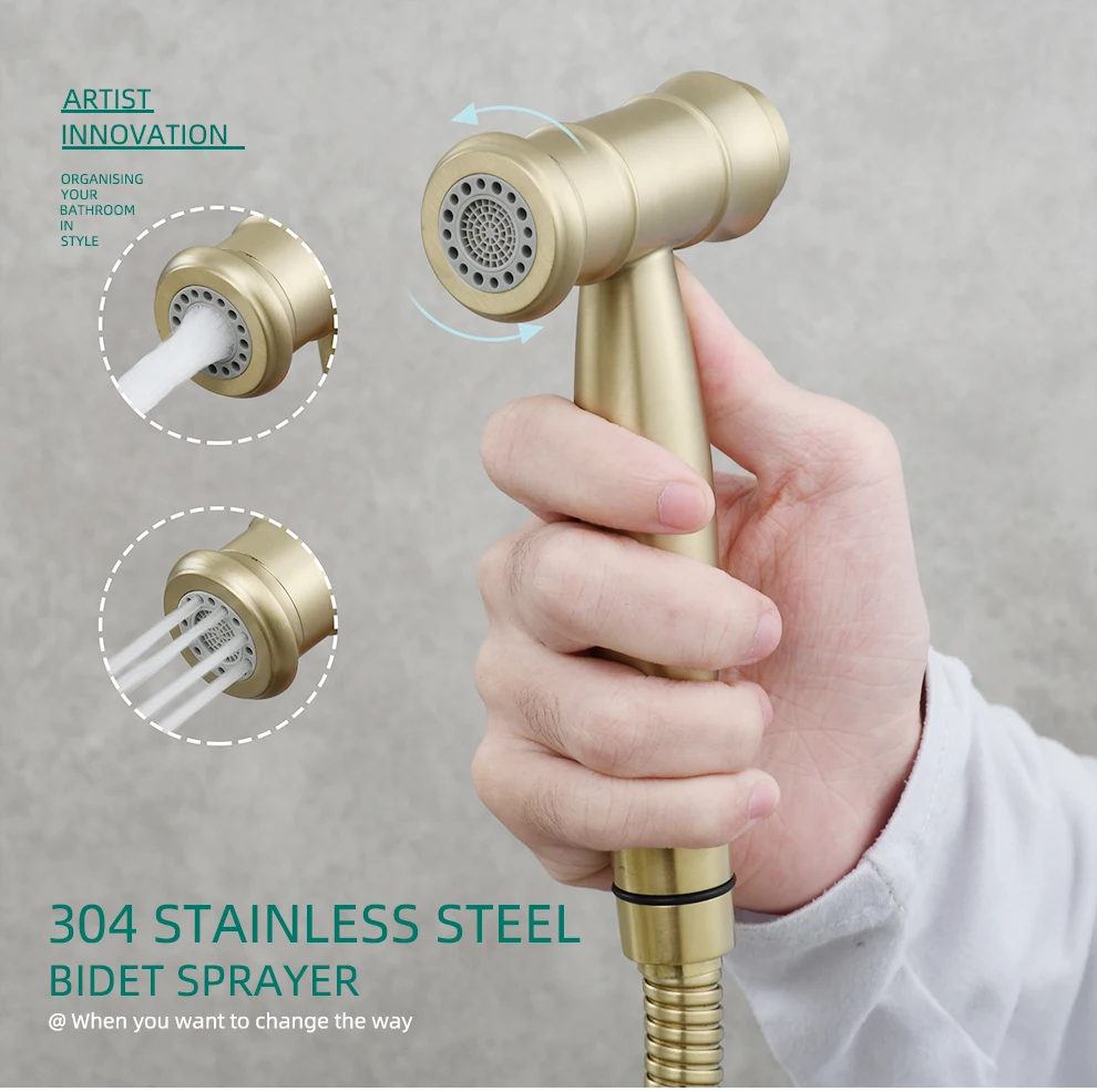 • Tecmolog 304 Stainless Steel Bidet Sprayer Set Dual Function Handheld Bidet Sprayer with Brass Diverter,Nickel/Black/Brushed Gold