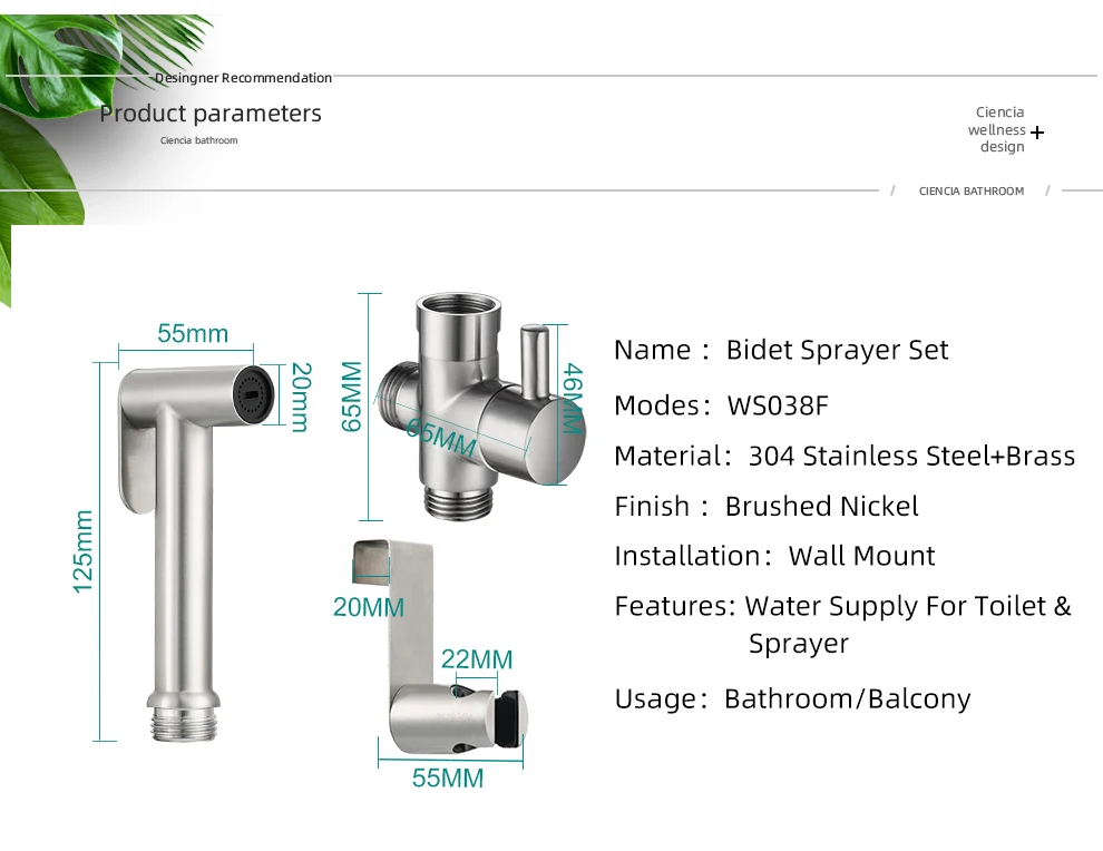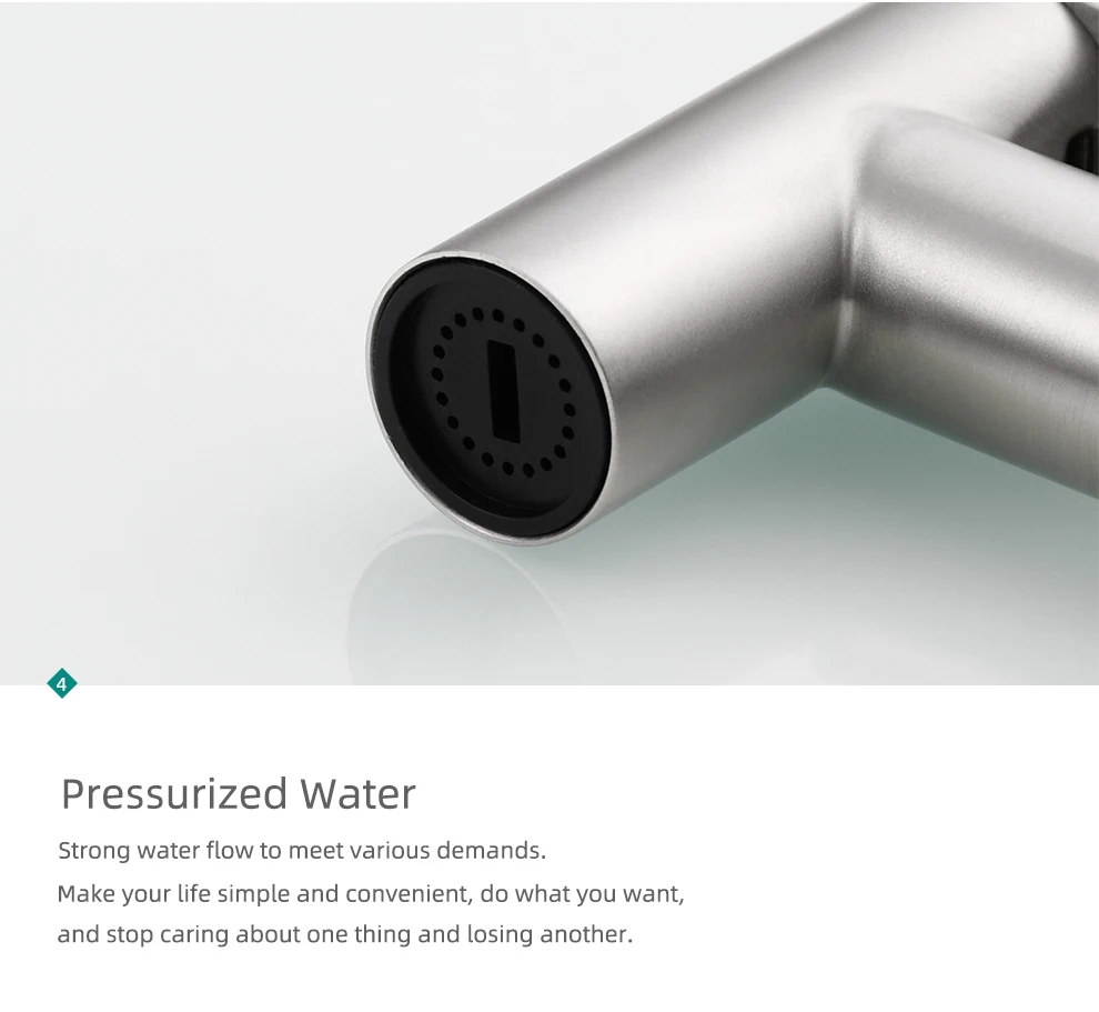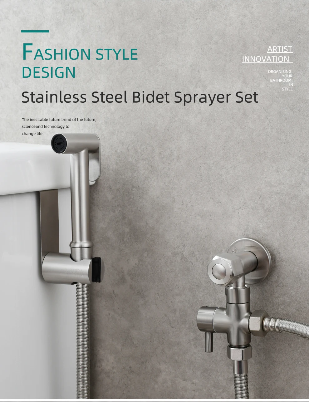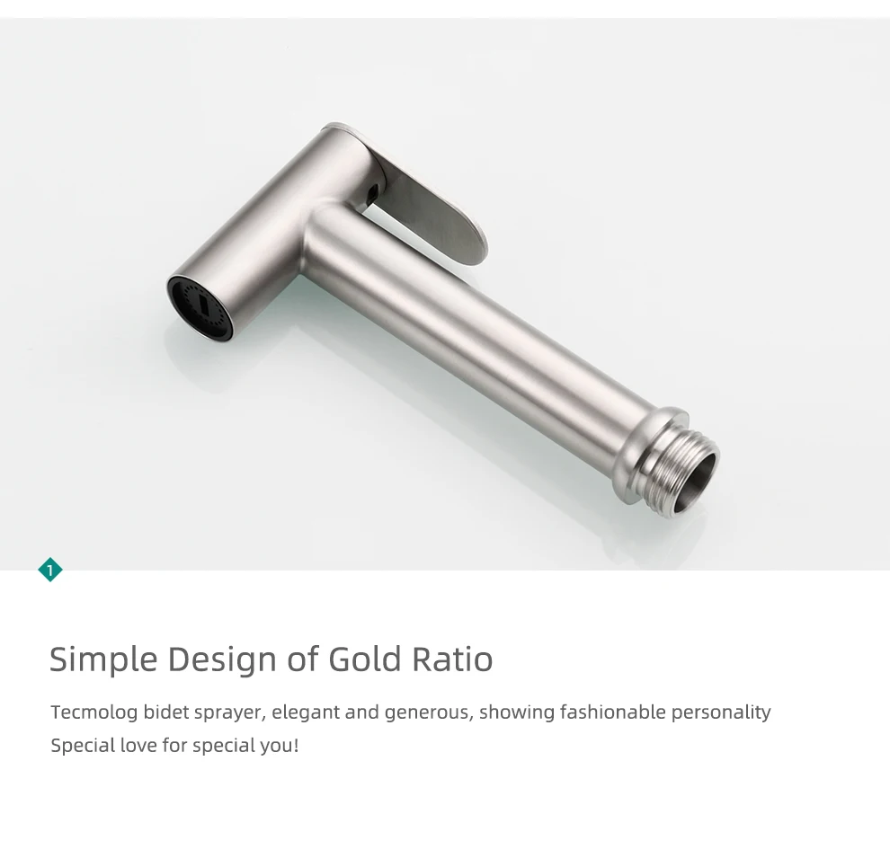• Tecmolog Stainless Steel Non Long Press Bidet Sprayer,Bathroom Pressurized Water Set with Holder and T-valve,WS038F